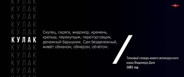 Одним из самых страшных «грехов» советской власти, безусловно, является раскулачивание, вызывающее скупую слезу у каждого уважающего себя борца с «тоталитарным режимом». Вся рукопожатная интеллигенция знает, что кулак — очень трудолюбивый работник, а не мироед и деревенский барыга. Давайте же обратим внимание на толковый словарь Даля от 1881 года, неужто и до него дотянулась большевистская пропаганда?